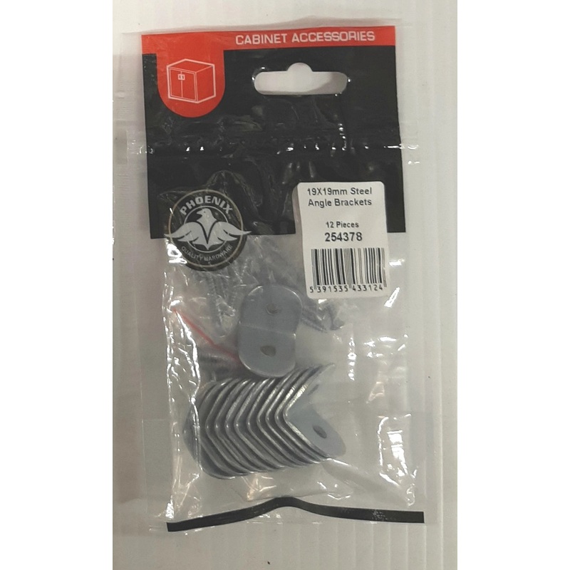 For extra strength were needed these steel angle brackets provide the stability you need.Size: 19mm x 19mm.Zinc finish.Available in Lodge's Homevalue, Athboy.